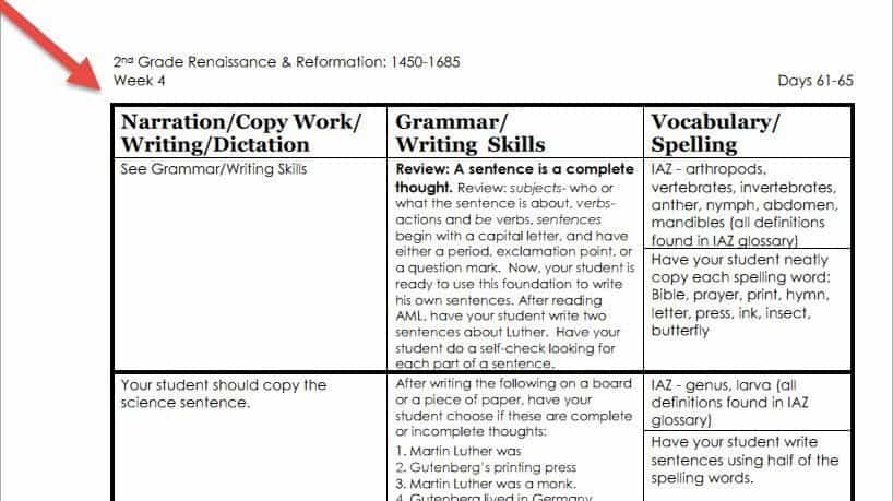 If you would like to see more examples just like this week, take a look at other daily lesson plan sample weeks. Go to our Daily Lesson Plans Page, and click on “Sample.” Then look for the language arts page that looks like this:
